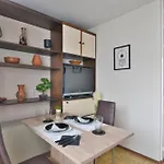 - ❓Is there a kitchen available at this apartment for guest use?Yes, this apartment is furnished with a fully equipped kitchen and offers a microwave, a fridge, and kitchenware as well.